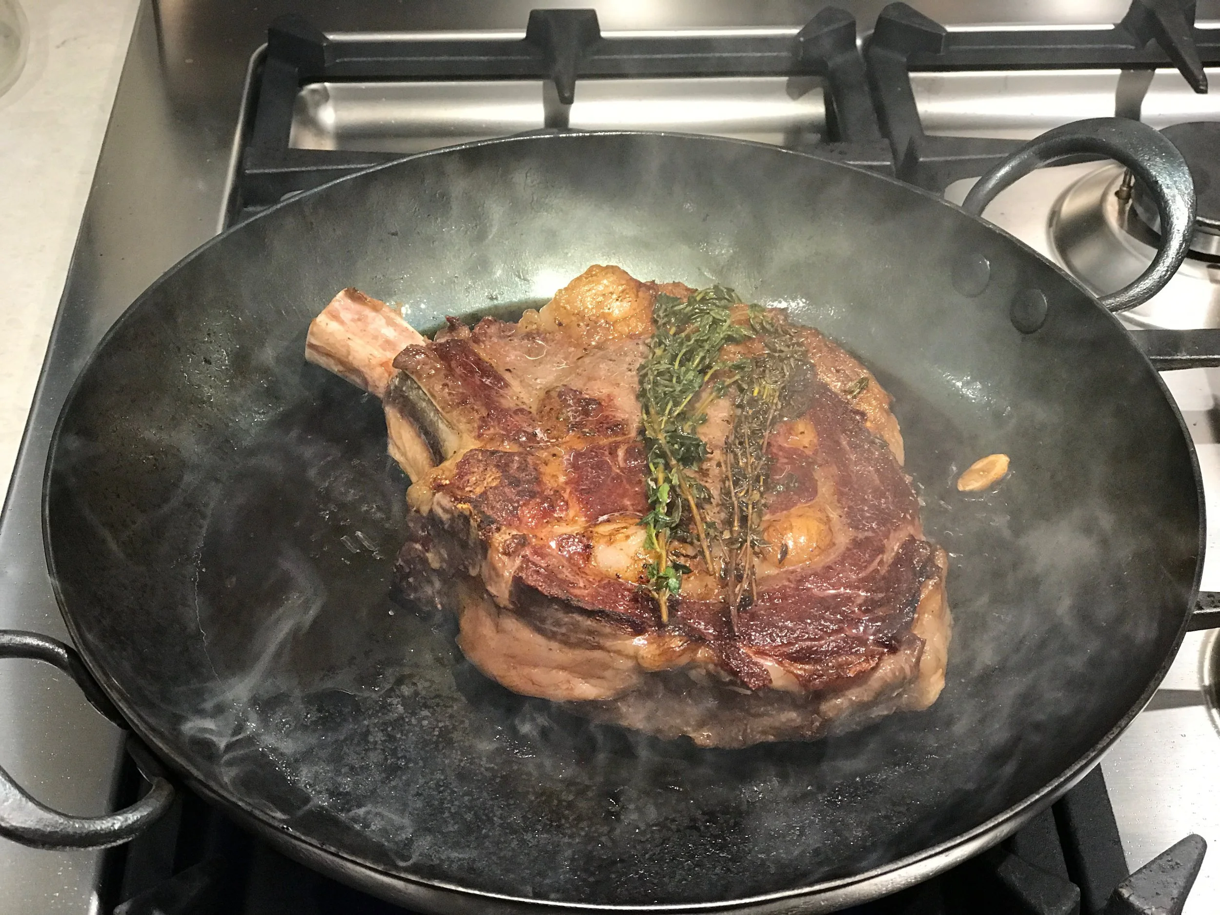 Below is a walk through of what it's like cooking two massive Cote de Boeuf (2lbs each, 2 inches thick) steaks. If you have ever cooked beasts like this, it can take a long time and produce poor results without the right equipment.